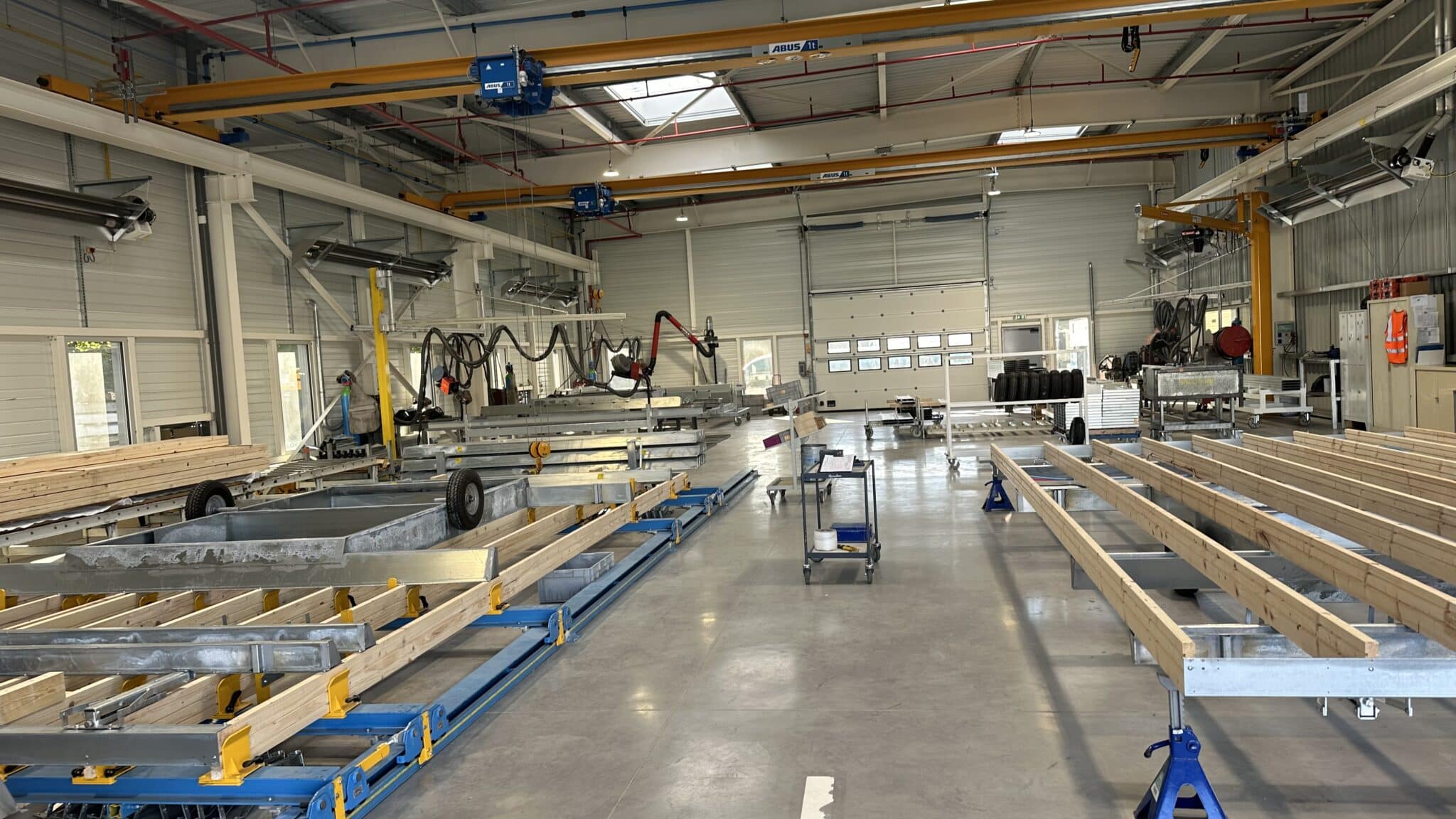 Le projet, situé à Sainte Hermine en Vendée, comprend la création d’un bâtiment de stockage, la construction d’un bâtiment dédié à la production de châssis, ainsi que l’extension du bâtiment principal de production, permettant d’accompagner le développement et l’optimisation des capacités industrielles du site.