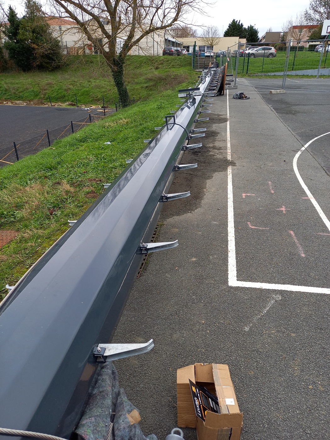 Cette opération a été particulièrement complexe en raison du dénivelé entre les deux terrains et de l’enclavement du stade en centre-ville, nécessitant une coordination précise et des solutions techniques adaptées.