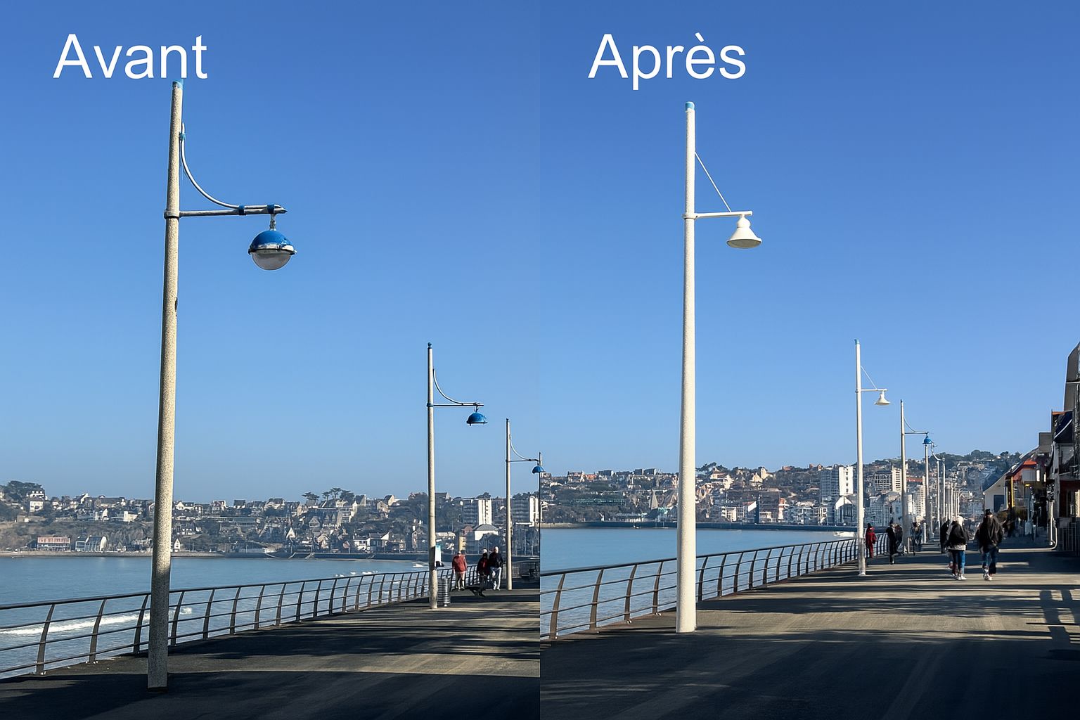 Les équipes ALLEZ Energies sont intervenues pour la rénovation complète de l’éclairage public de la digue en zone protégé natura 2000, avec le remplacement des équipements existants par des luminaires LED performants et économes en énergie. Une attention particulière a été portée à la préservation de la biodiversité.