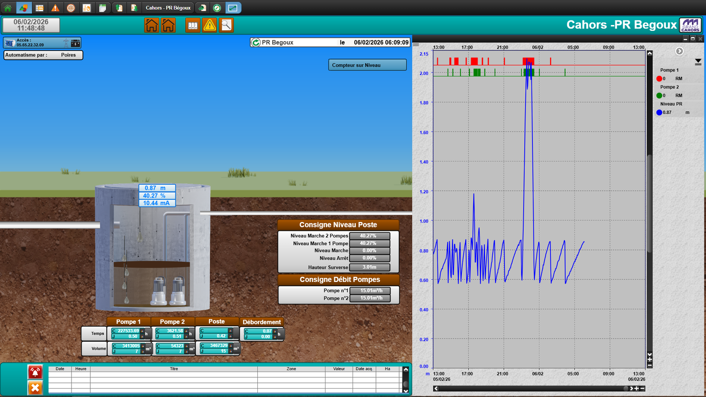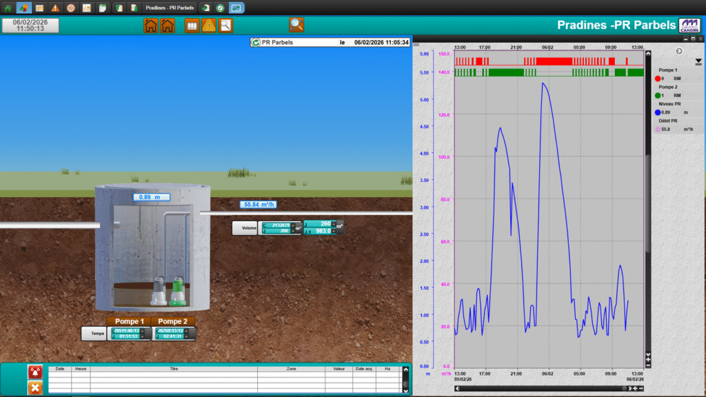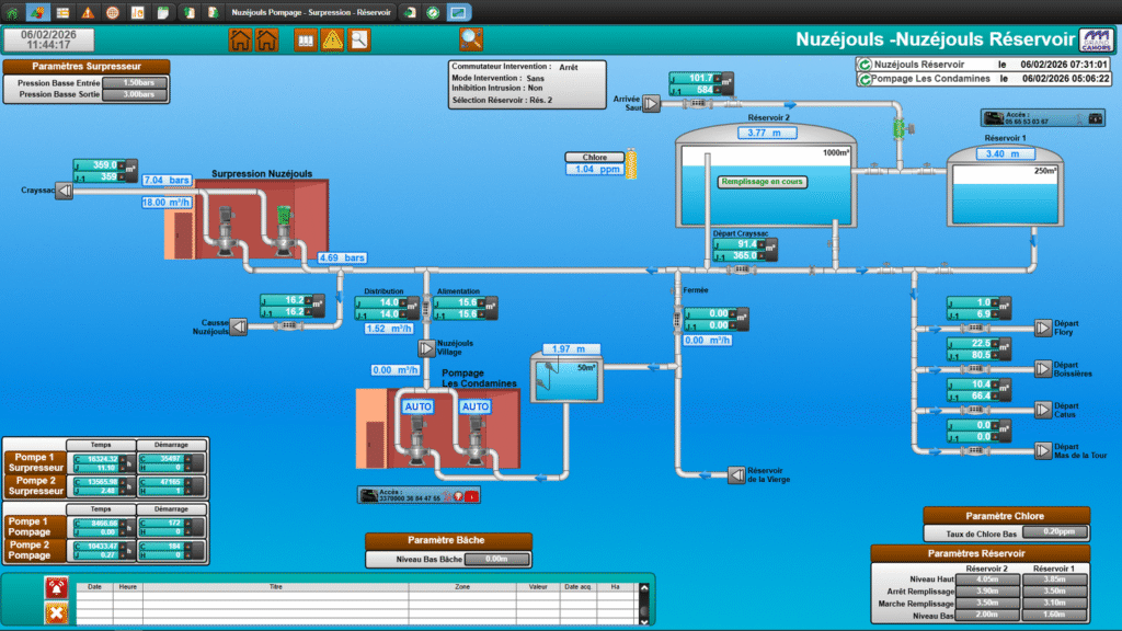 La supervision déployée permet aujourd’hui le suivi et le pilotage de nombreuses installations, notamment : des postes de relevage, des stations de traitement des eaux usées, des déversoirs d’orage, ainsi que, pour la partie eau potable : des réservoirs d’eau, des postes de surpression, des points d’analyse et de contrôle.